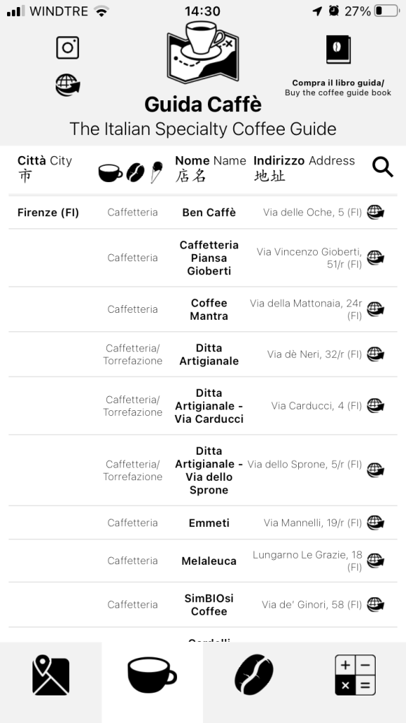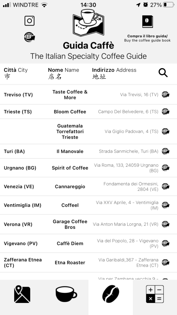 EN – Welcome to the first Italian Specialty Coffee Guide. Please go to the Menu and select the list that you prefer, or go to “Guide” to buy and receive your paper version at your home.
